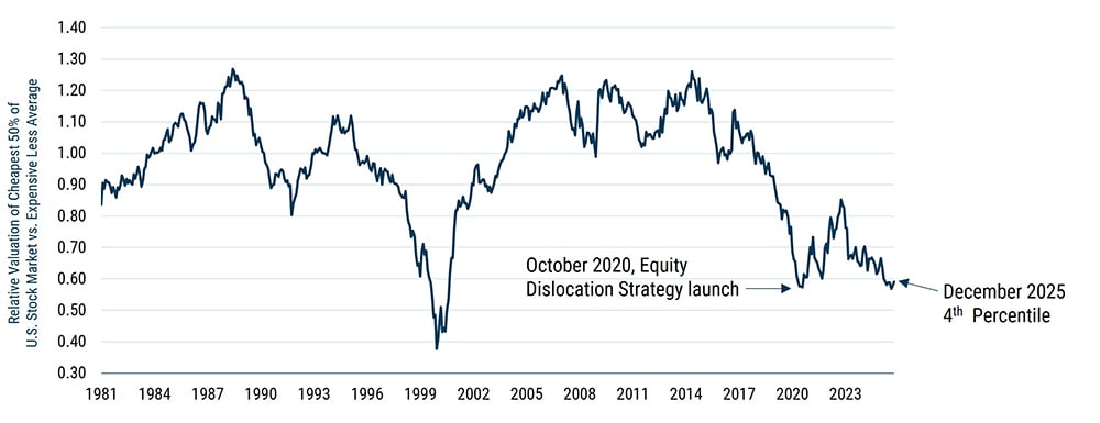 Ultimately, 2025 was a very satisfactory year, both in absolute terms and versus a naïve MSCI ACWI Value minus MSCI ACWI Growth. The value vs. growth spread in the U.S. has widened even further, and despite the narrowing of developed ex-U.S. spreads, our excitement about the Equity Dislocation Strategy’s prospects has only increased.