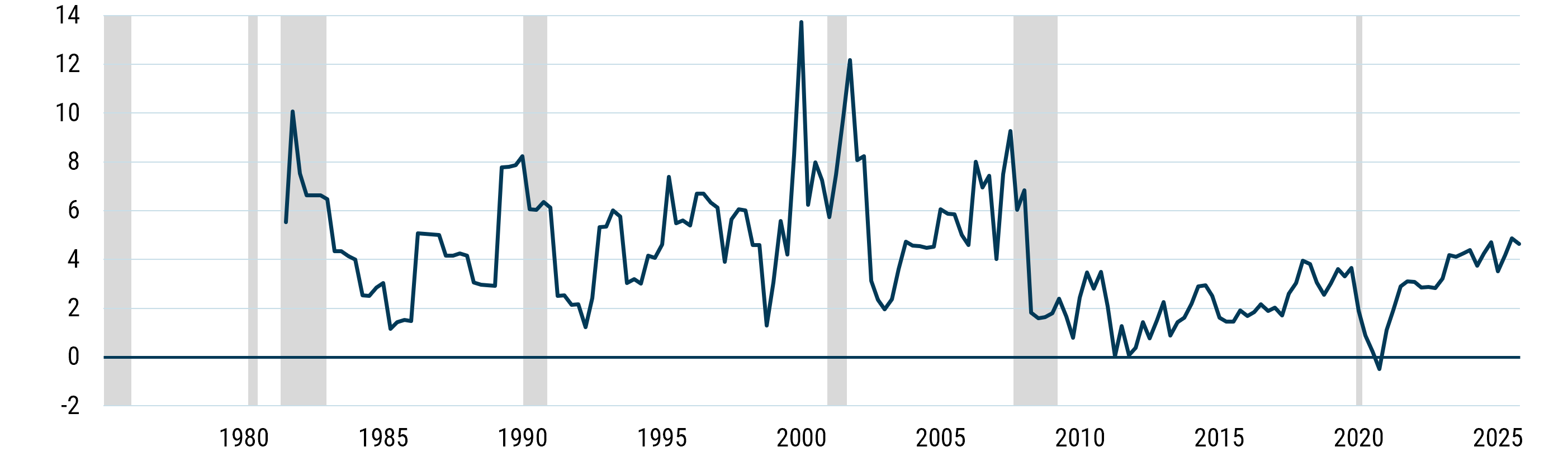 These arguments may well prove valid, and the current investment cycle could ultimately prove to diverge from historical precedent. Still, investors would do well to frame the current environment against the backdrop of past episodes where unusually high aggregate investment has often carried important signals about risk.
